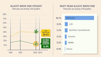 In population studies, marijuana is actually connected to having a lower body weight. Researchers looked at 50,000 people and surveyed their cannabis use. Among people who used cannabis at least three days a week, there was a 14 to 17 percent incidence of obesity. Meanwhile, people who completely abstain from marijuana use for the last 12 months had a 22 to 25 percent obesity rate.